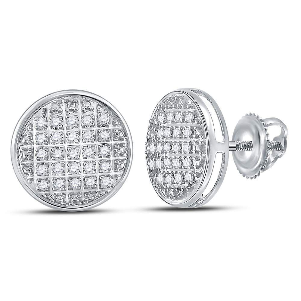 REF-13M6X - SKU: GD117949 ---- Mens Diamond Circle Cluster Stud Earrings 1/8 Cttw 10kt White Gold