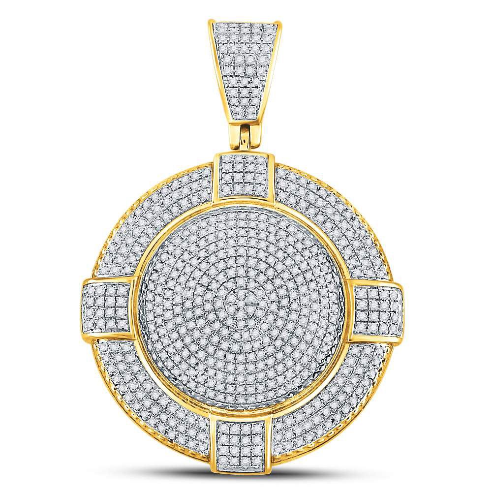 10kt Yellow Gold Mens Round Diamond Circle Frame Medallion Charm Pendant 7/8 Cttw