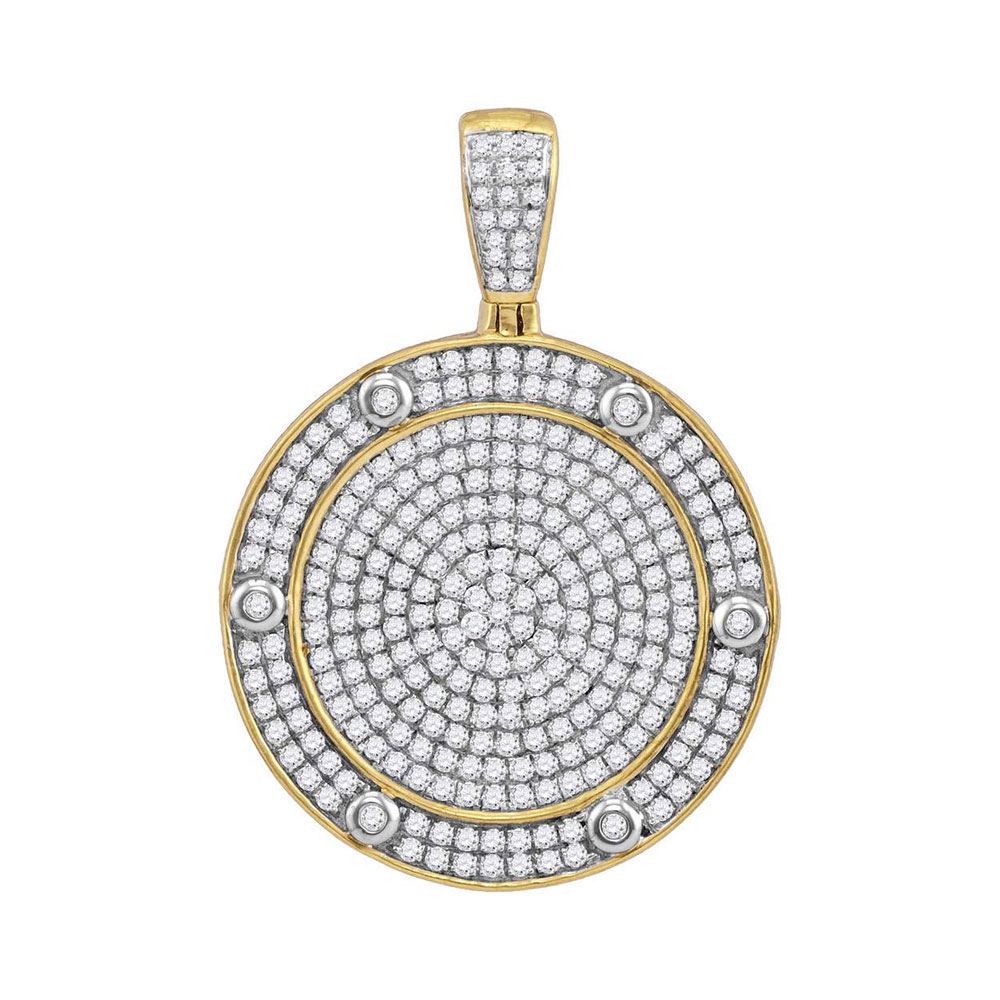 REF-95M5X - SKU: GD117984 ---- Mens Diamond Circle Medallion Charm Pendant 1-1/2 Cttw 10kt Yellow Gold