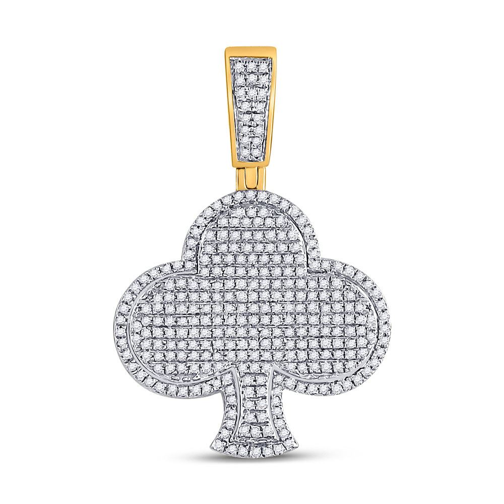 10kt Yellow Gold Mens Round Diamond Clover Charm Pendant 3/4 Cttw