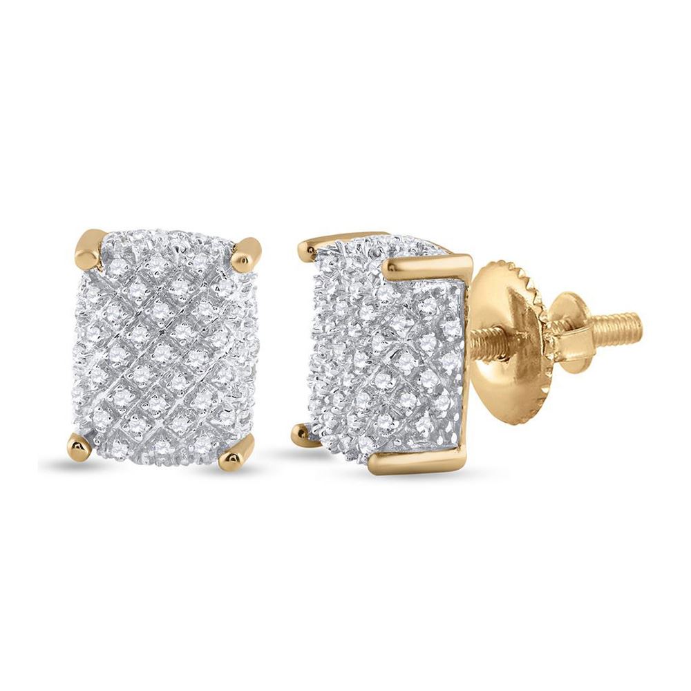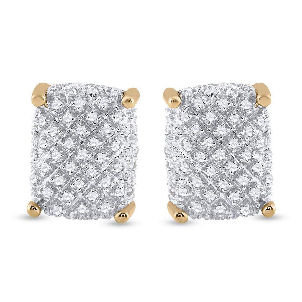 10kt Yellow Gold Mens Round Diamond Cluster Earrings 1/3 Cttw