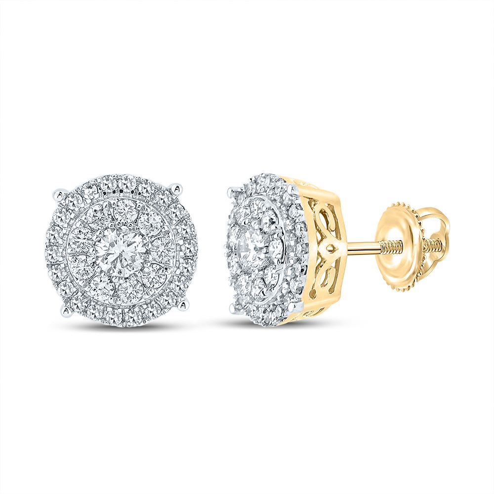 10kt Yellow Gold Mens Round Diamond Cluster Earrings 5/8 Cttw