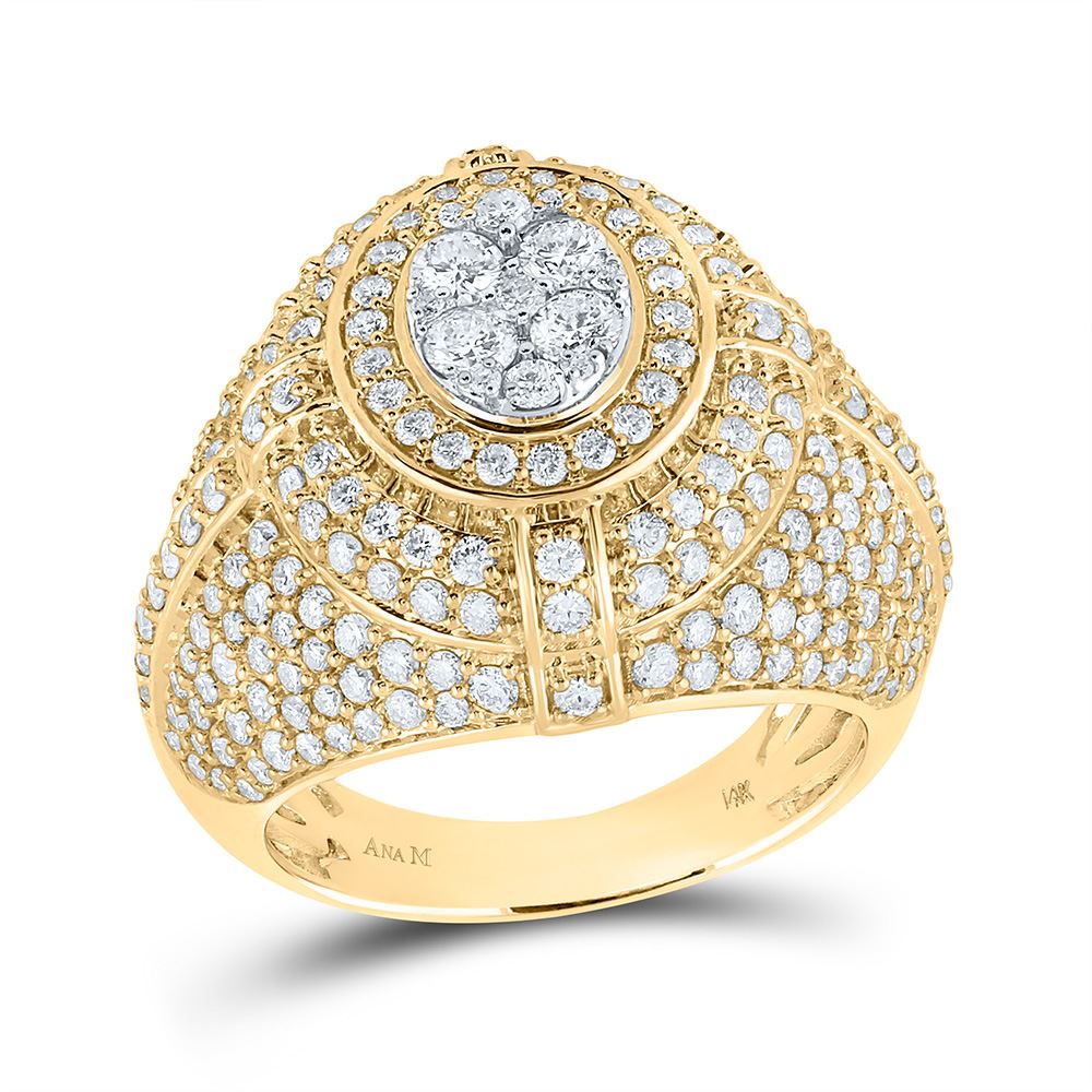 14kt Yellow Gold Mens Round Diamond Cluster Ring 3-5/8 Cttw