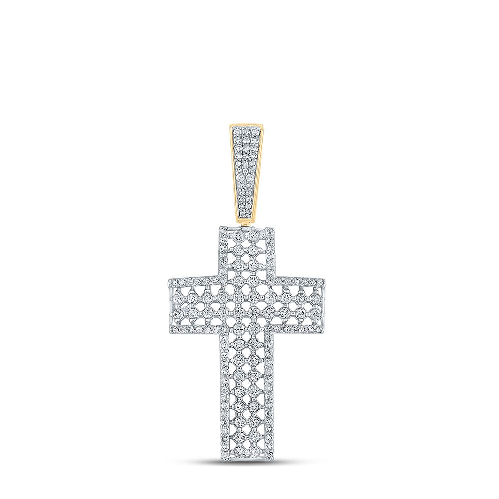10kt Yellow Gold Mens Round Diamond Cross Charm Pendant 1-1/2 Cttw