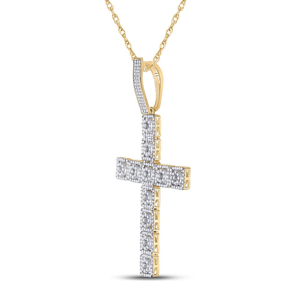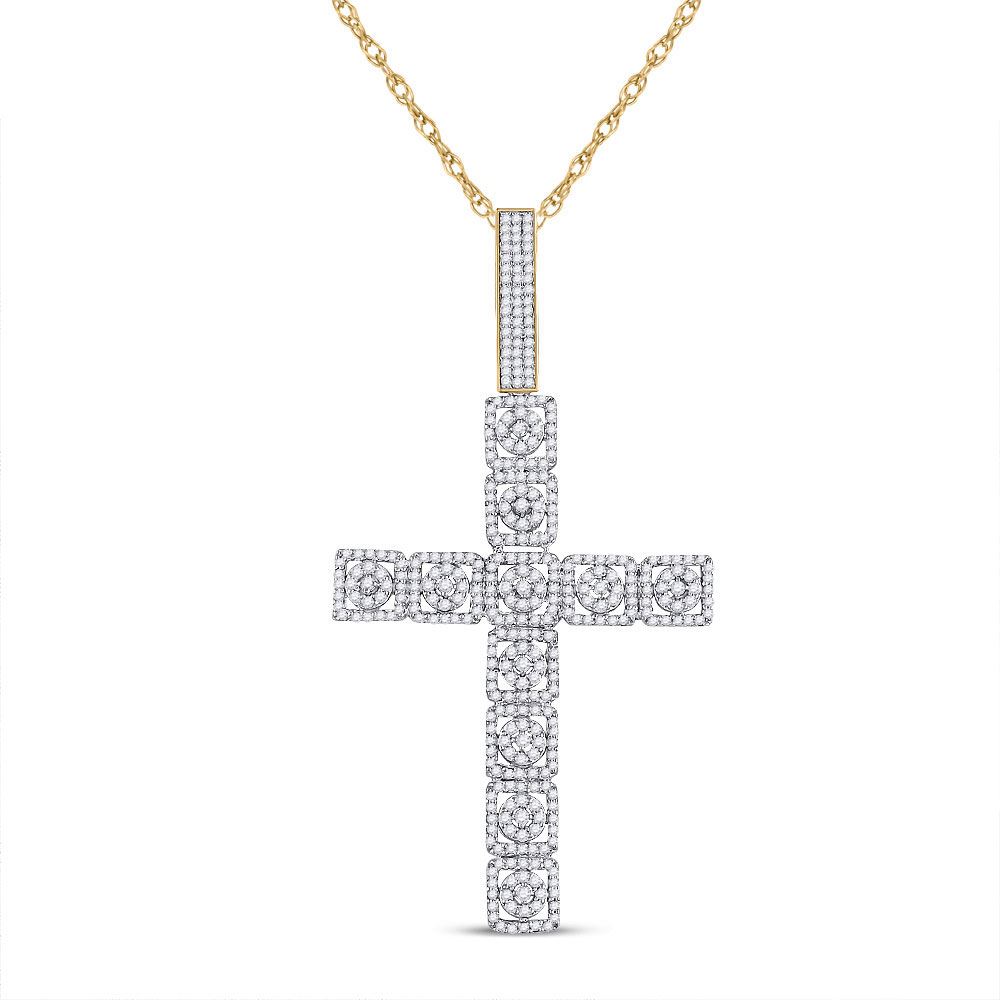 10kt Yellow Gold Mens Round Diamond Cross Charm Pendant 1-1/5 Cttw