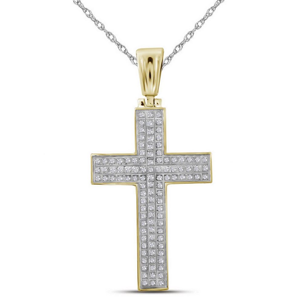 10kt Yellow Gold Mens Round Diamond Cross Charm Pendant 1/3 Cttw