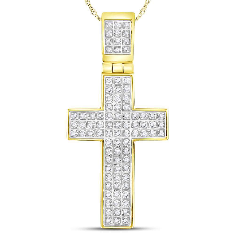 10kt Yellow Gold Mens Round Diamond Cross Charm Pendant 1/4 Cttw
