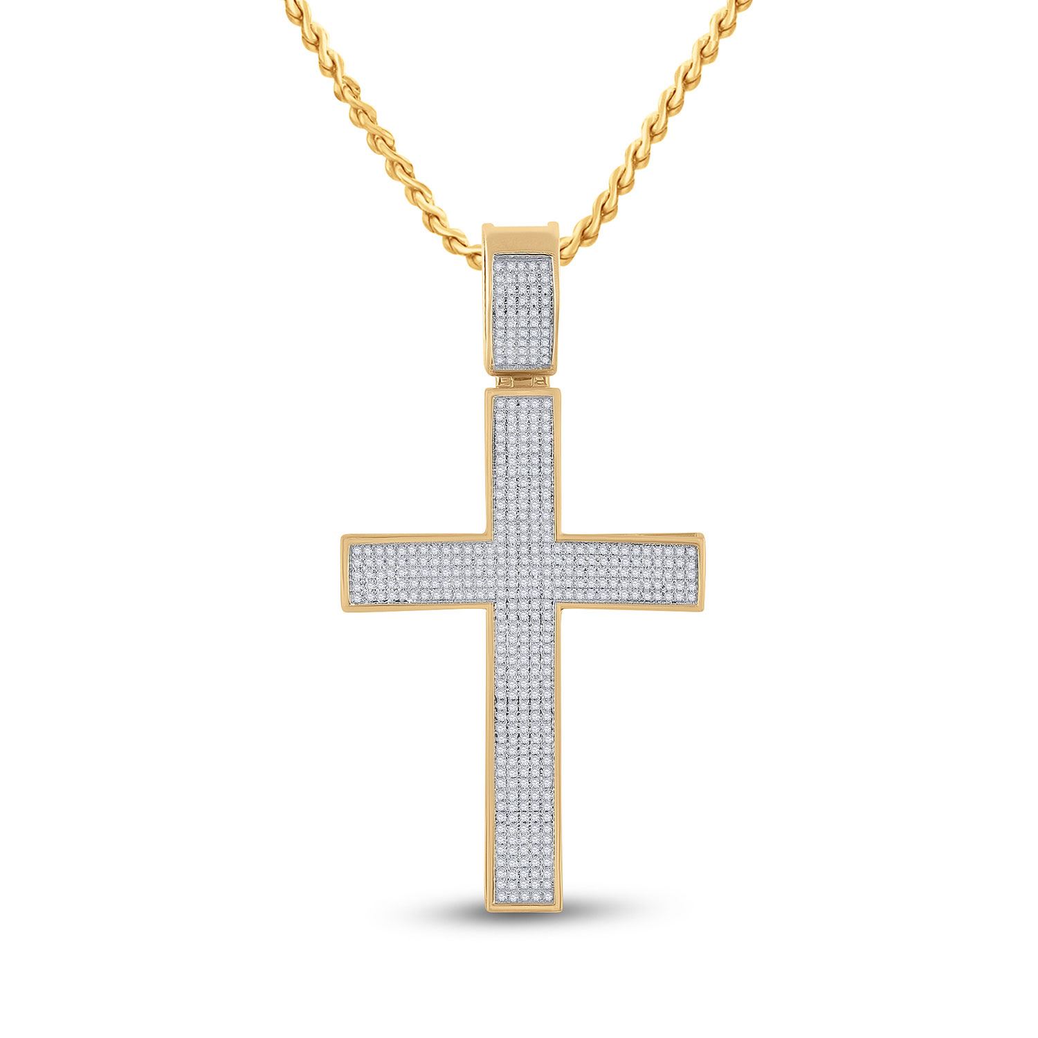 10kt Yellow Gold Mens Round Diamond Cross Charm Pendant 1 Cttw