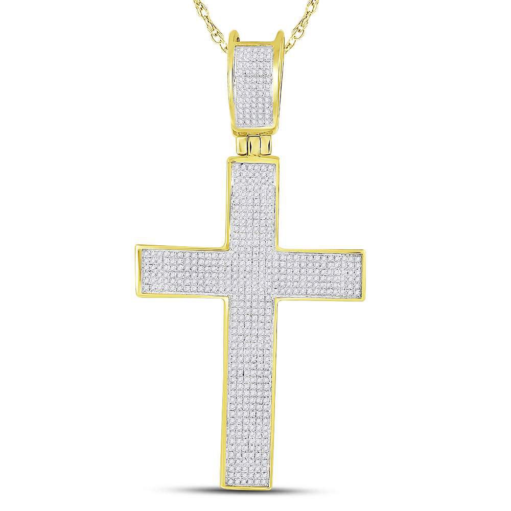 10kt Yellow Gold Mens Round Diamond Cross Charm Pendant 1 Cttw