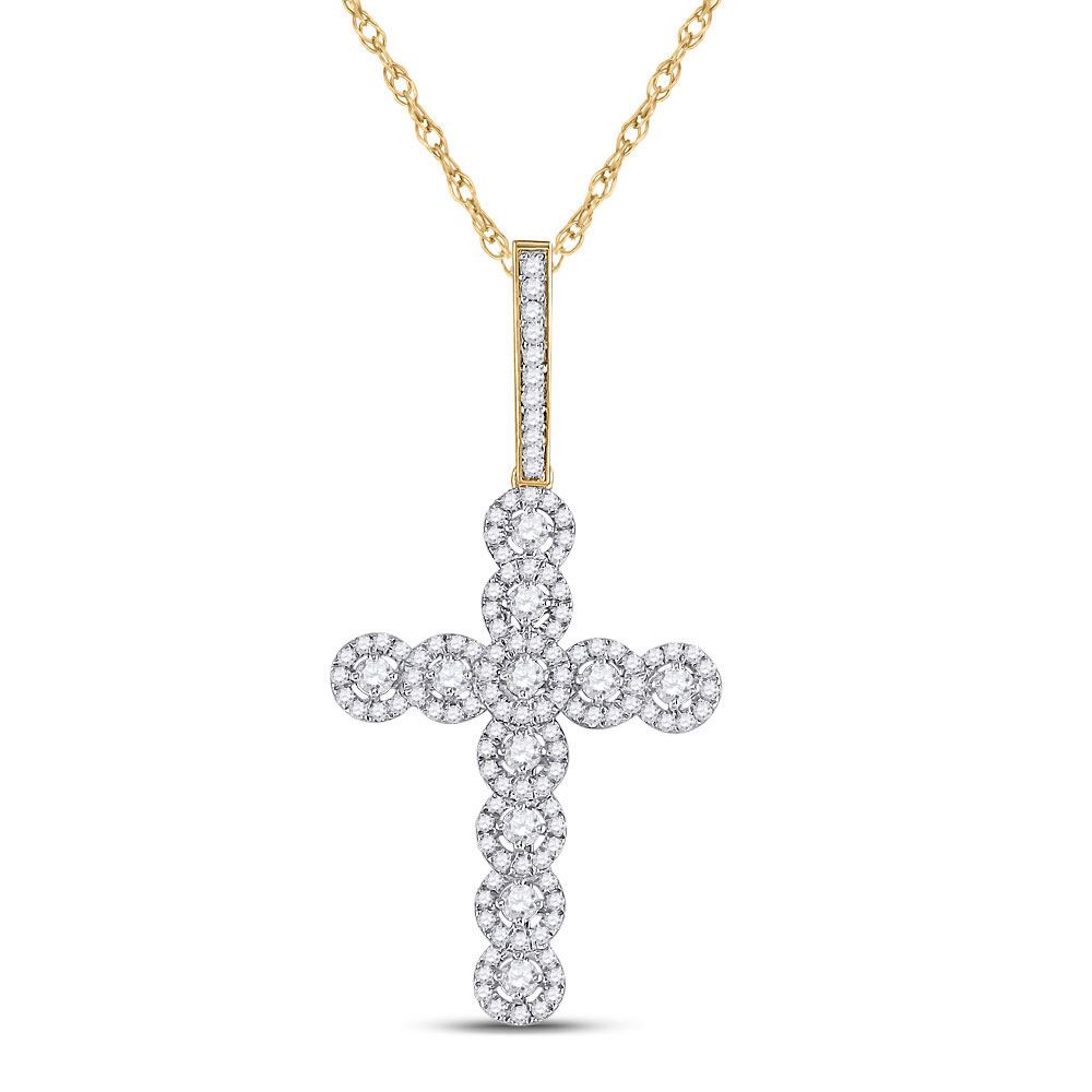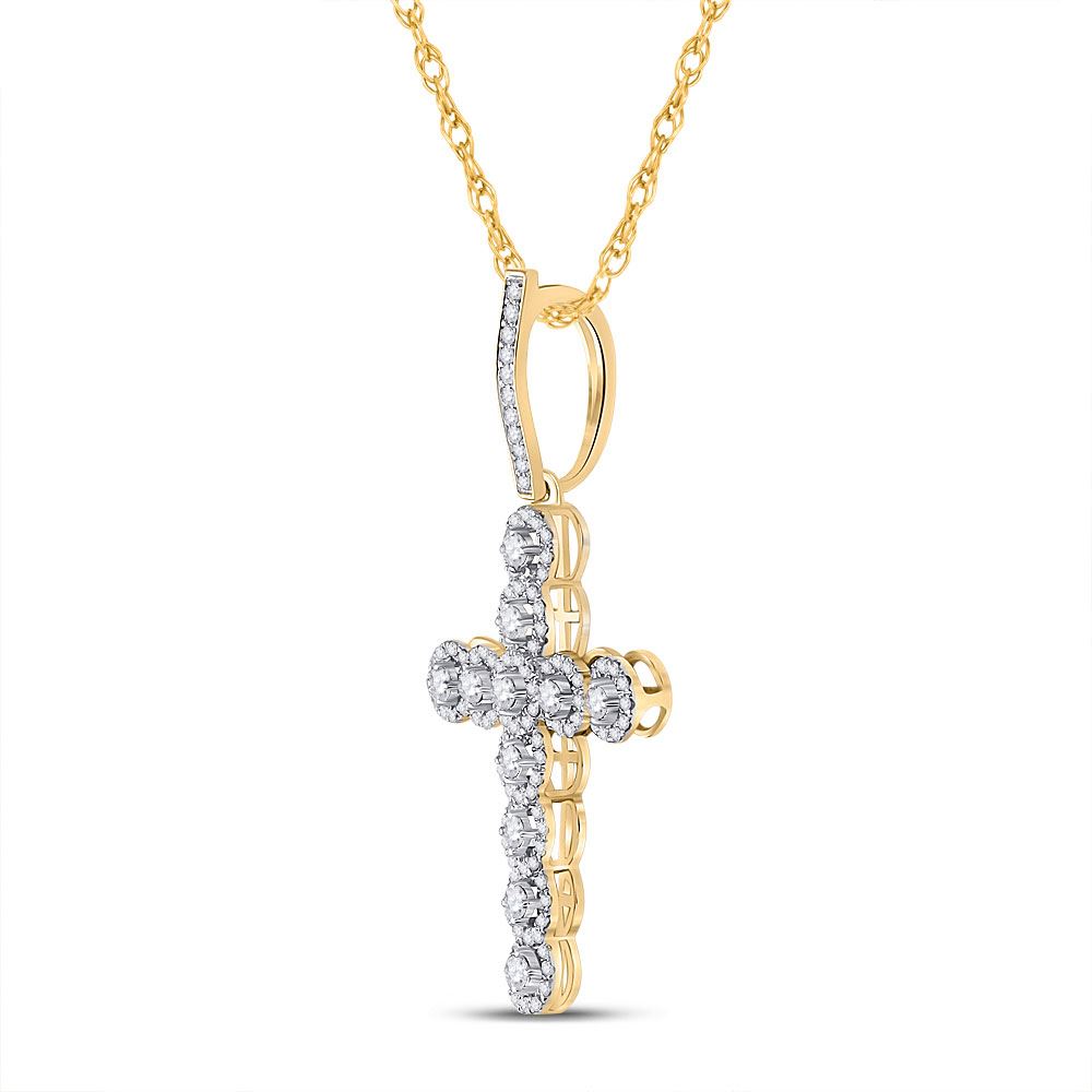 10kt Yellow Gold Mens Round Diamond Cross Charm Pendant 3/4 Cttw