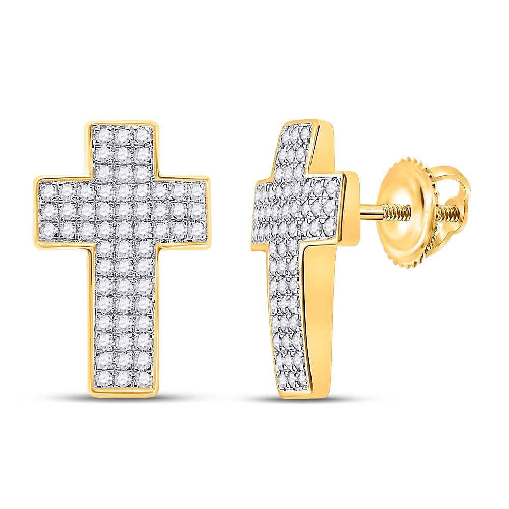 10kt Yellow Gold Mens Round Diamond Cross Earrings 1/2 Cttw