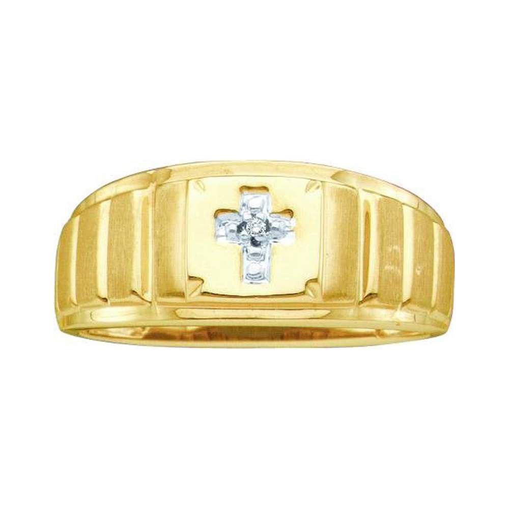 REF-22Y7X - SKU: GD37421 ---- Mens Diamond Cross Faith Ring .01 Cttw 10kt Yellow Gold