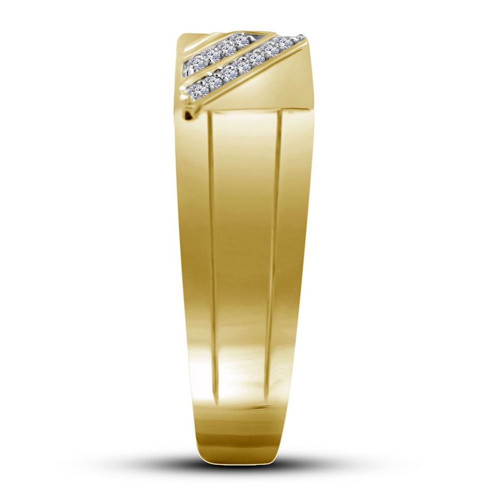10kt Yellow Gold Mens Round Diamond Diagonal Row Flat Top Fashion Ring 1/12 Cttw