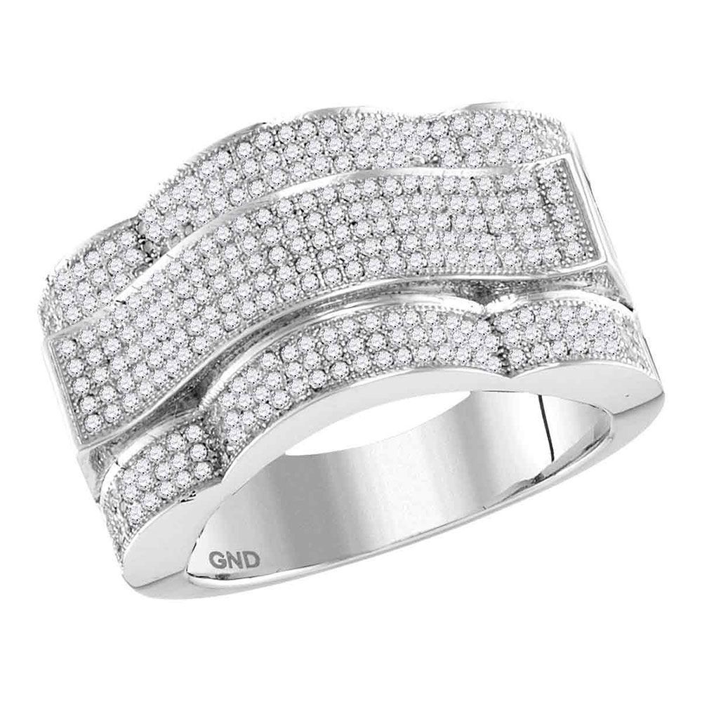 REF-83Y6X - SKU: GD85963 ---- Mens Diamond Domed Rectangle Cluster Ring 1.00 Cttw 10kt White Gold