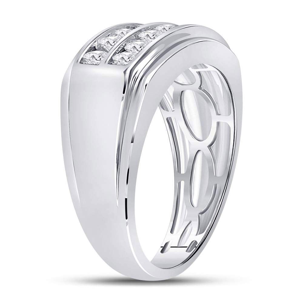 14kt White Gold Mens Round Diamond Double Row Band Ring 1 Cttw