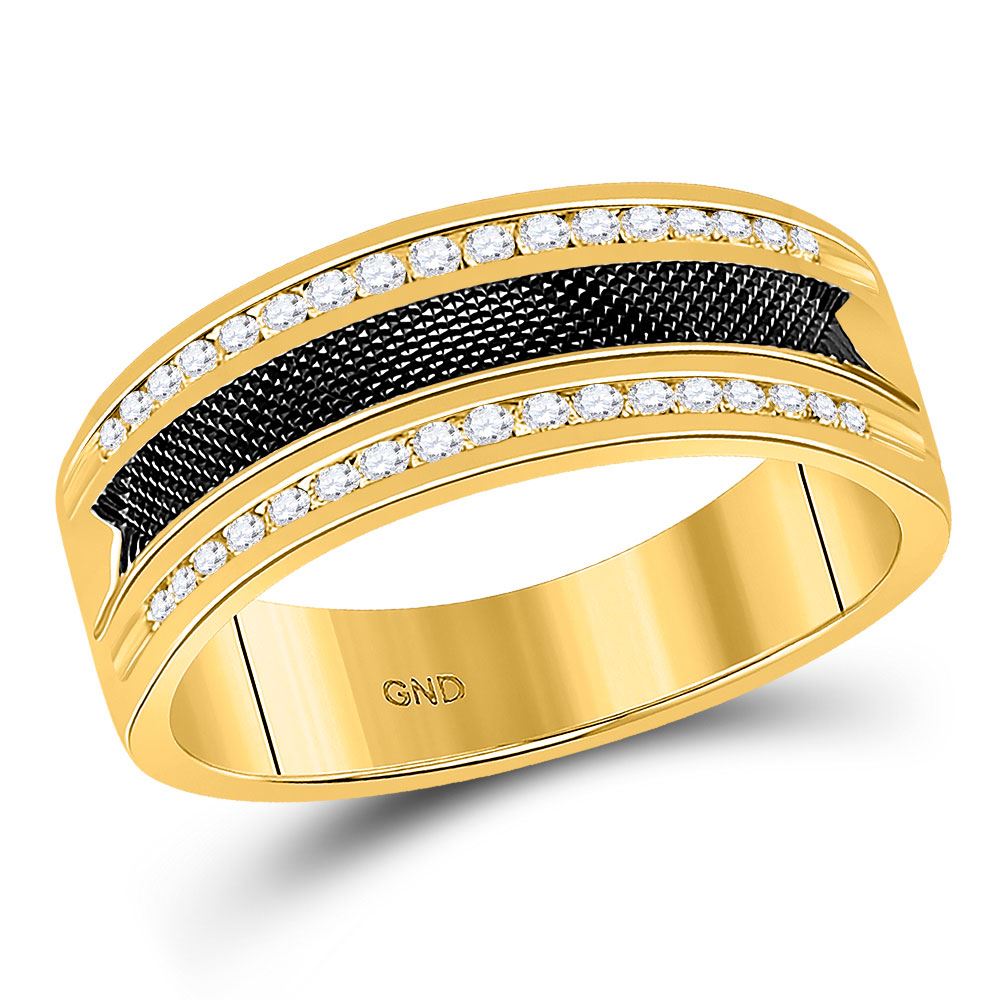 REF-49K1R - SKU: GD114405 ---- Mens Diamond Double Row Black Textured Wedding Band Ring 1/4 Cttw 14kt Yellow Gold