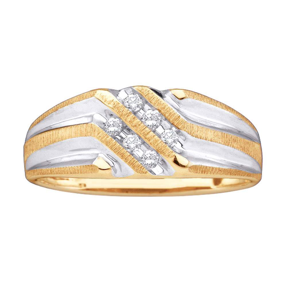 REF-20W0H - SKU: GD26402 ---- Mens Diamond Double Row Two-tone Ridged Wedding Band Ring 1/8 Cttw 10kt Yellow Gold