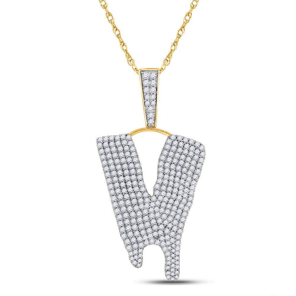 10kt Yellow Gold Mens Round Diamond Dripping V Letter Charm Pendant 2-7/8 Cttw