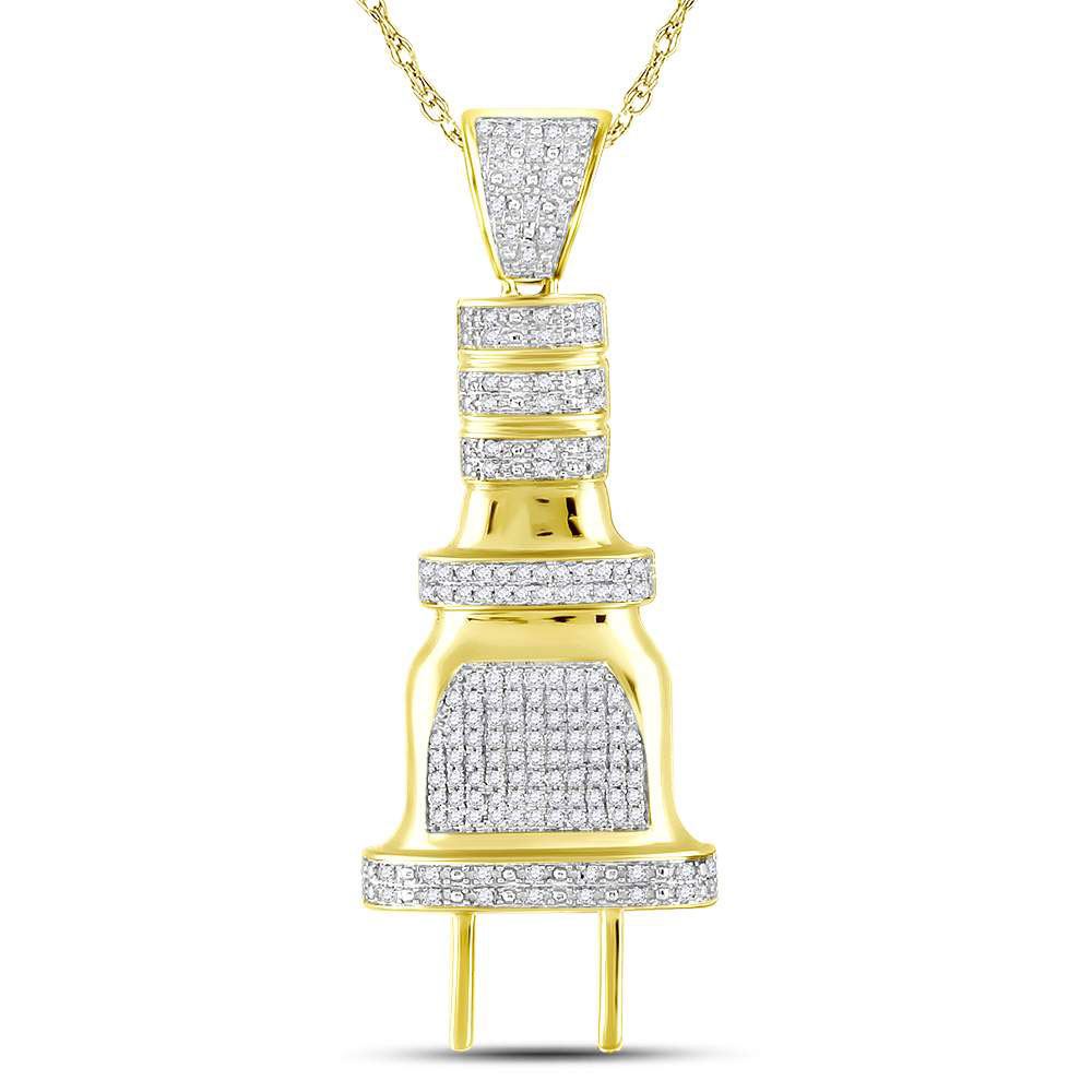 10kt Yellow Gold Mens Round Diamond Electric Plug Socket Charm Pendant 1/2 Cttw