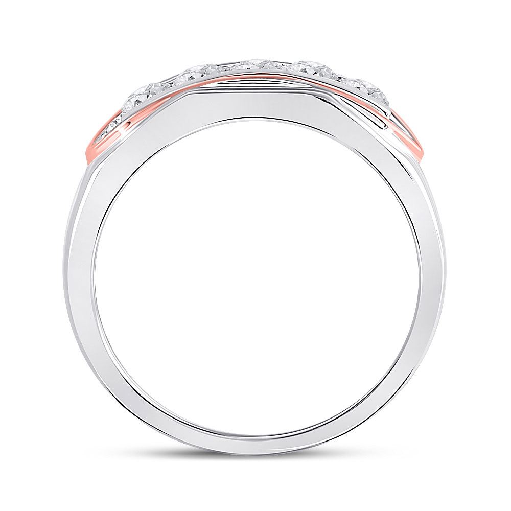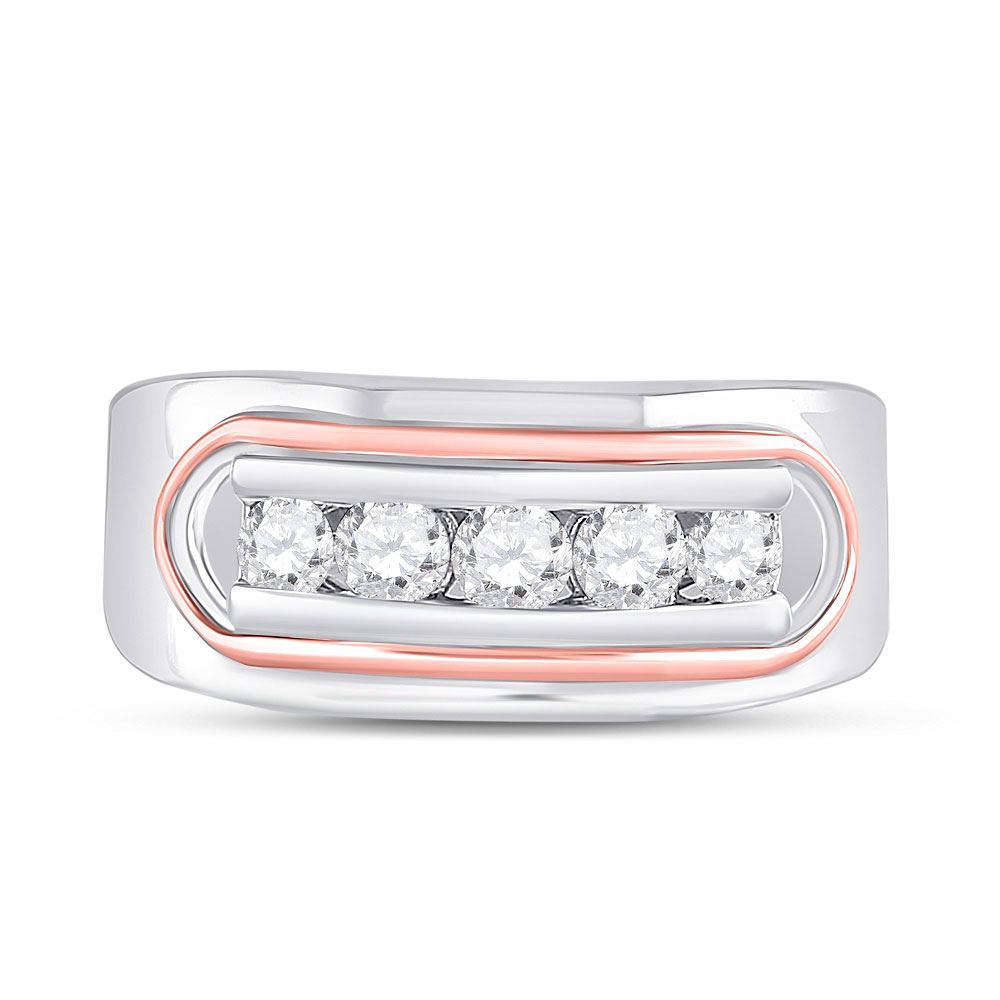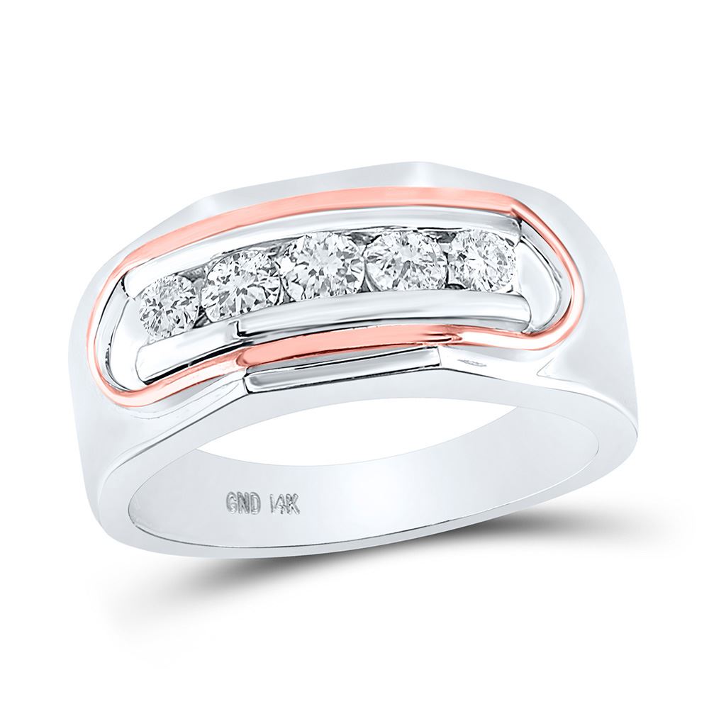 14kt Two-tone Gold Mens Round Diamond Faceted Single Row Band Ring 3/4 Cttw