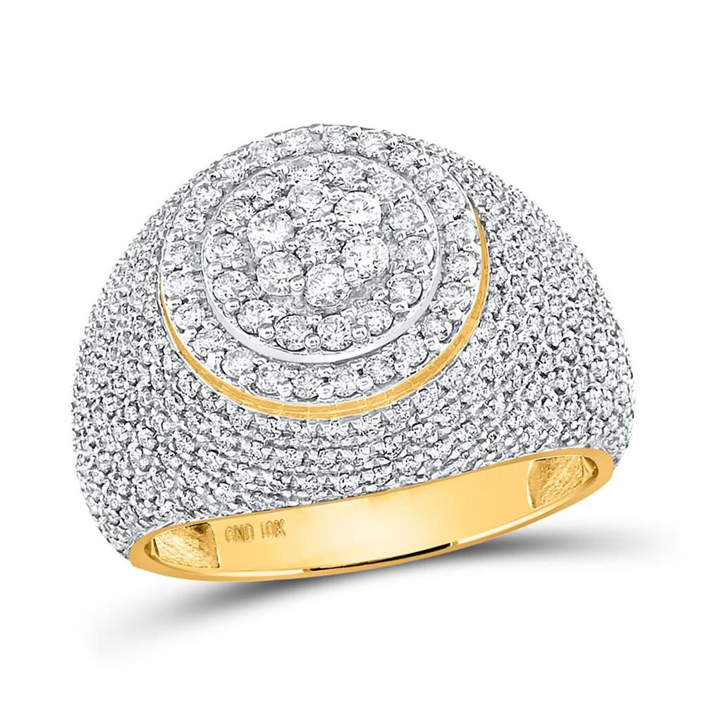10kt Yellow Gold Mens Round Diamond Flower Cluster Ring 2 Cttw