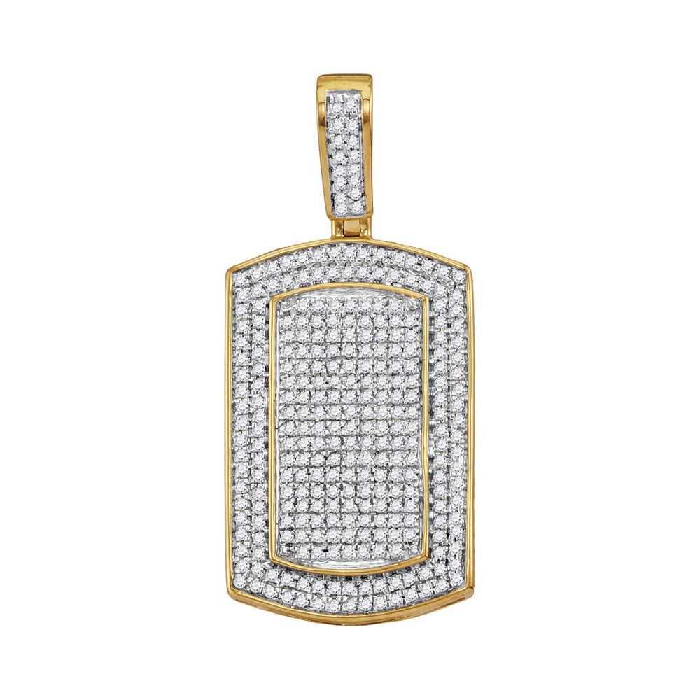 REF-66V4A - SKU: GD114626 ---- Mens Diamond Framed Dog Tag Cluster Charm Pendant 7/8 Cttw 10kt Yellow Gold