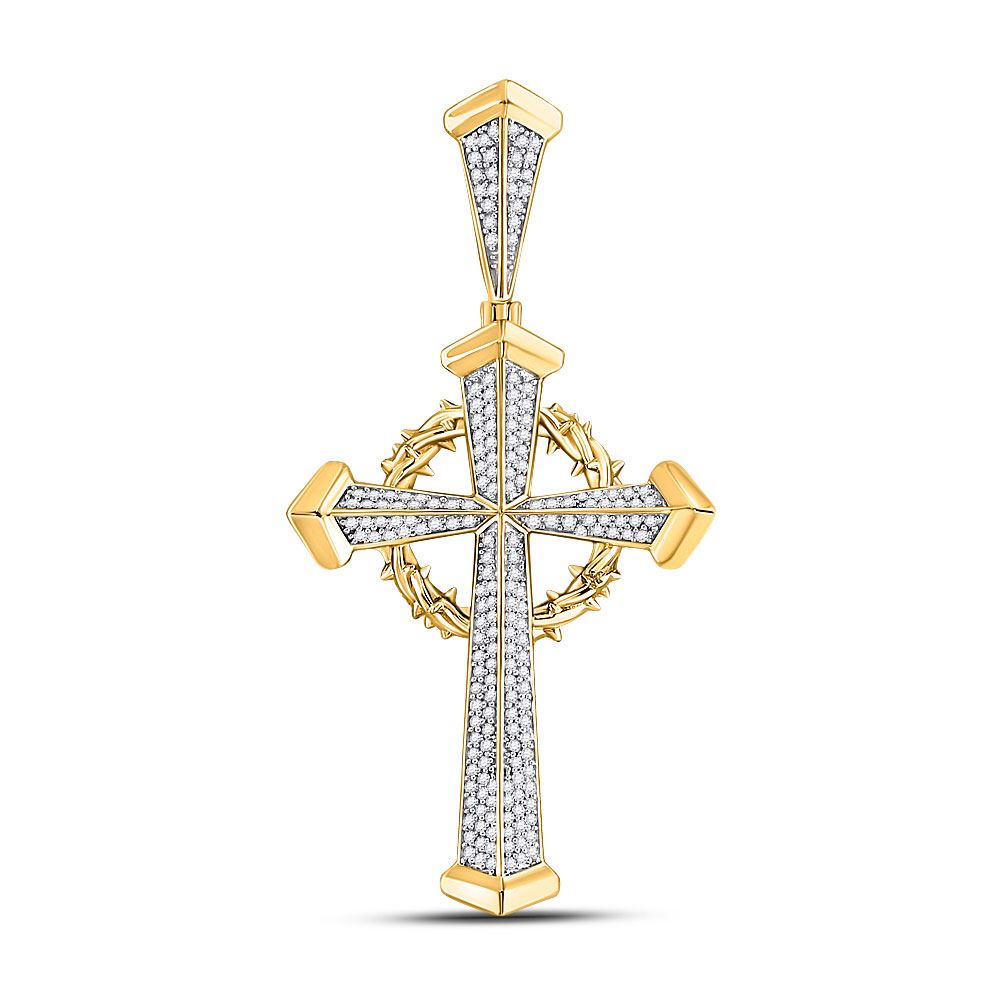 10kt Yellow Gold Mens Round Diamond Gothic Cross Charm Pendant 1/2 Cttw