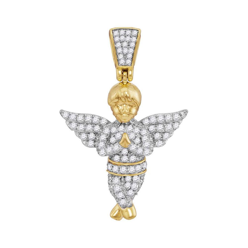10kt Yellow Gold Mens Round Diamond Guardian Angel Charm Pendant 1/2 Cttw