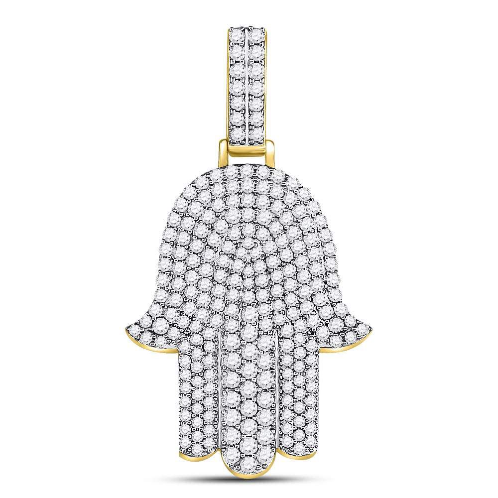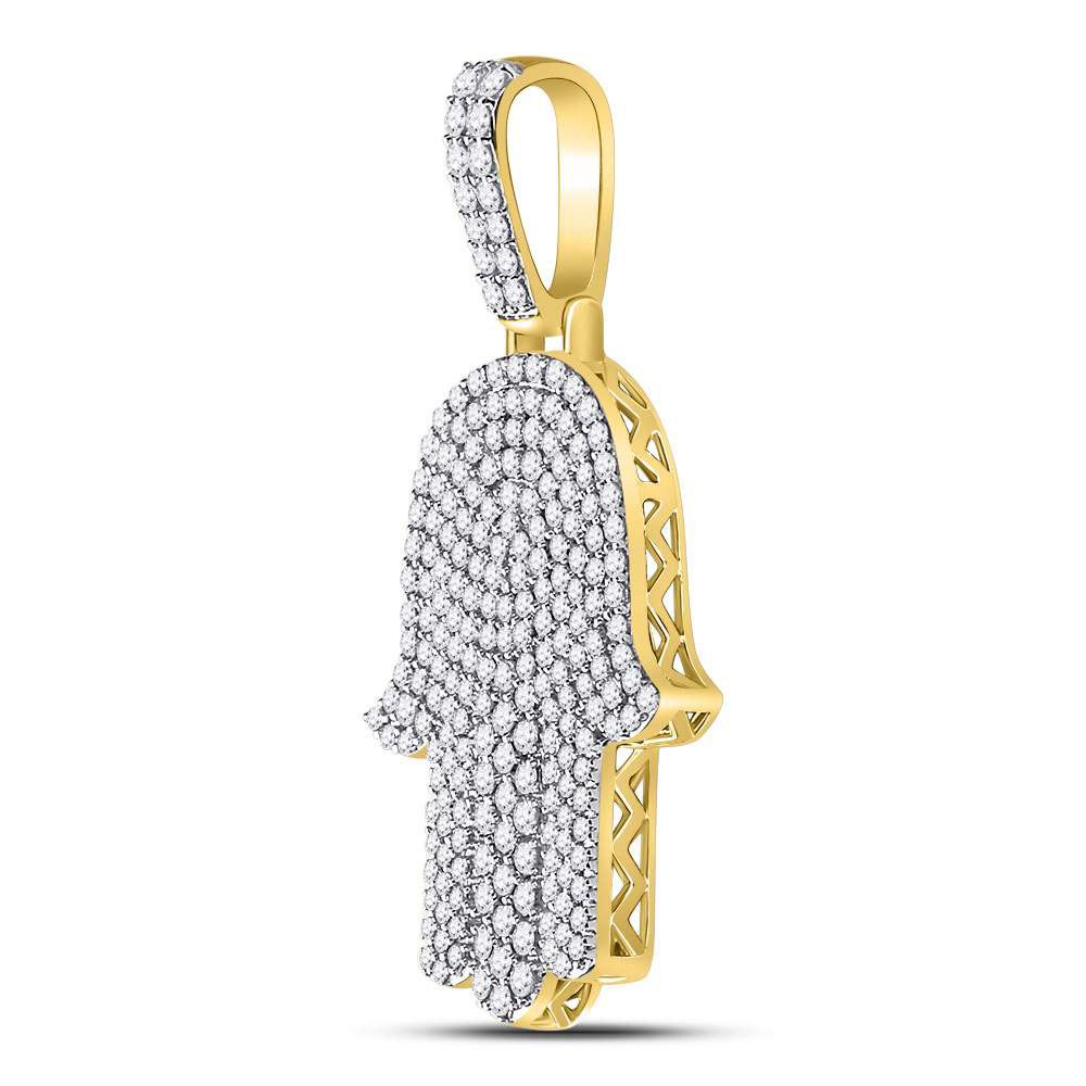 10kt Yellow Gold Mens Round Diamond Hamsa Charm Pendant 1-1/2 Cttw