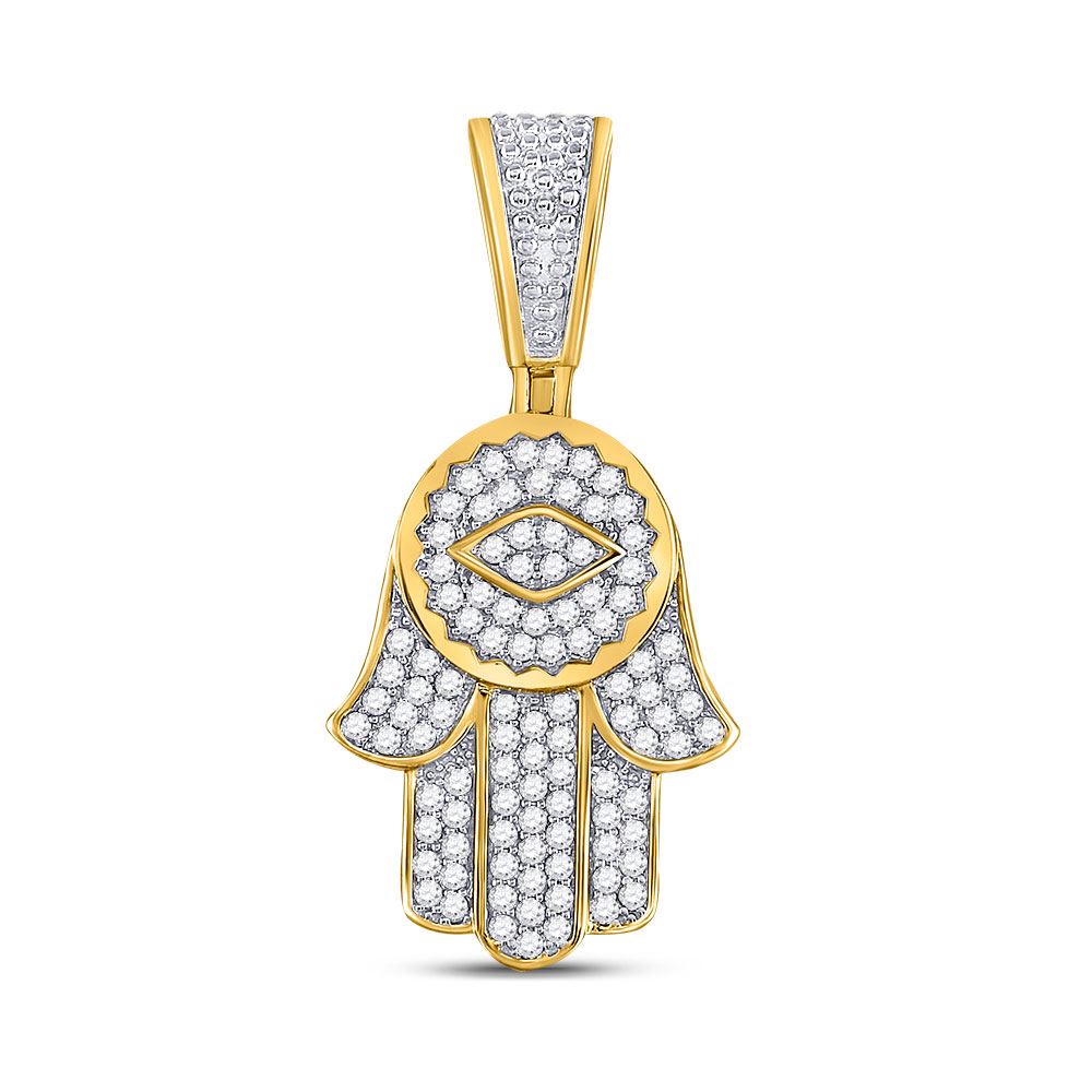 REF-90K0R - SKU: GD150068 ---- Mens Diamond Hamsa Charm Pendant 7/8 Cttw 10kt Yellow Gold