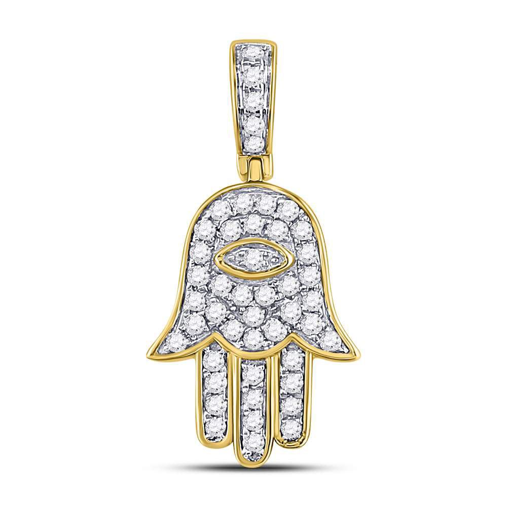 10kt Yellow Gold Mens Round Diamond Hamsa Eye Fatima Charm Pendant 1/4 Cttw