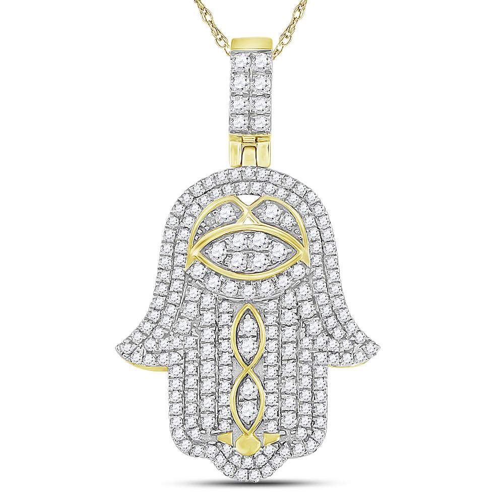 REF-85H5W - SKU: GD119848 ---- Mens Diamond Hamsa Hand Charm Pendant 1-1/2 Cttw 10kt Yellow Gold