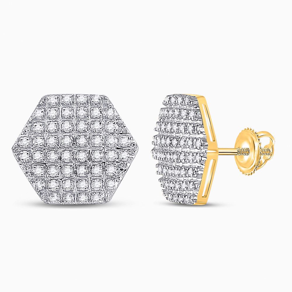 10kt Yellow Gold Mens Round Diamond Hexagon Stud Earrings 1/3 Cttw