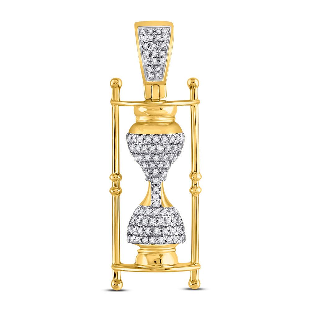 10kt Yellow Gold Mens Round Diamond Hourglass Charm Pendant 1/3 Cttw