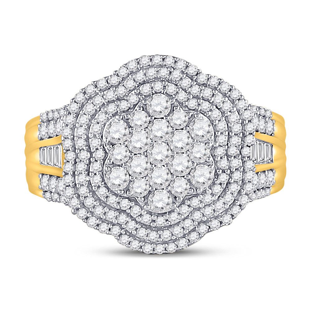 10kt Yellow Gold Mens Round Diamond Large Cluster Band Ring 1-1/2 Cttw