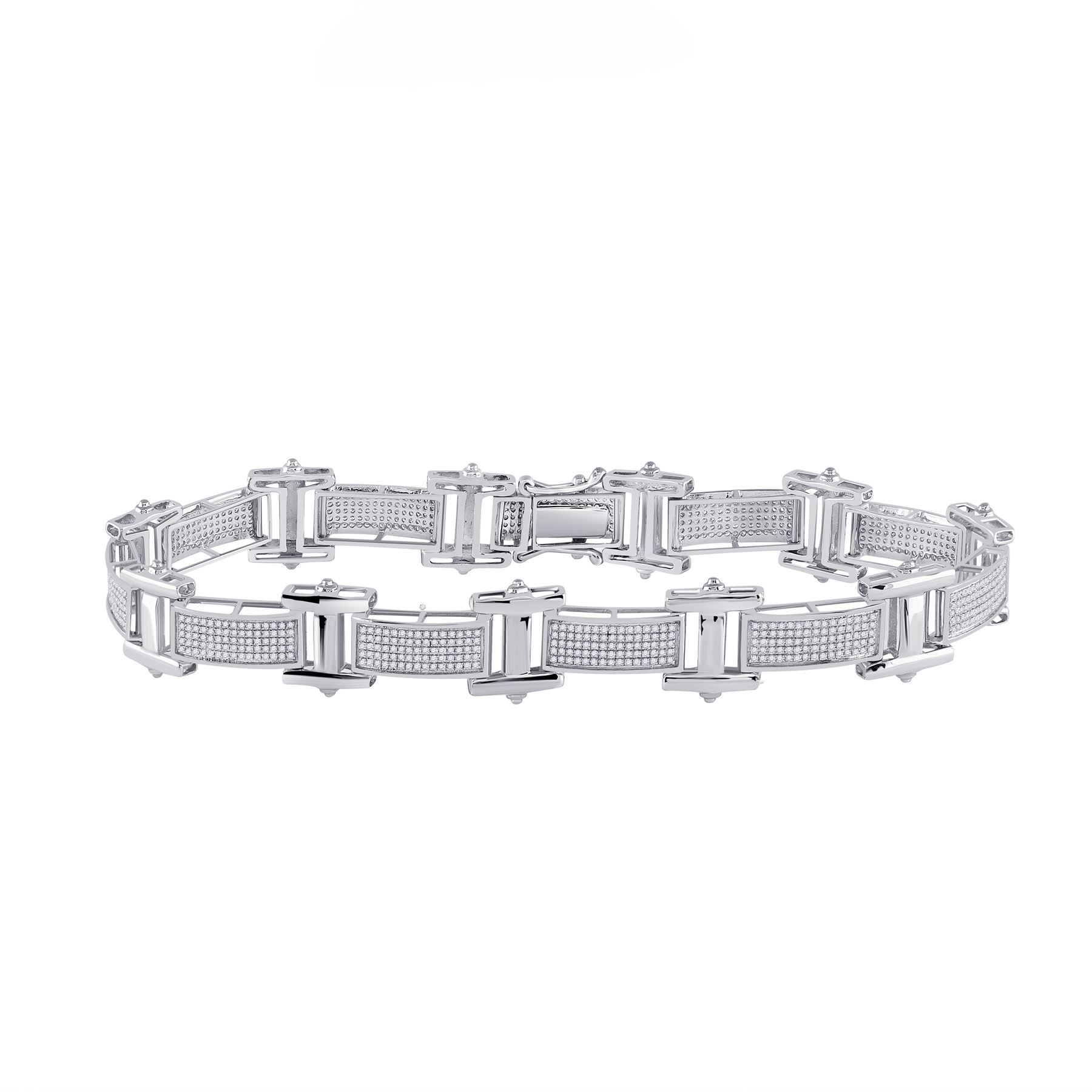 10kt White Gold Mens Round Diamond Link Bracelet 1-3/8 Cttw