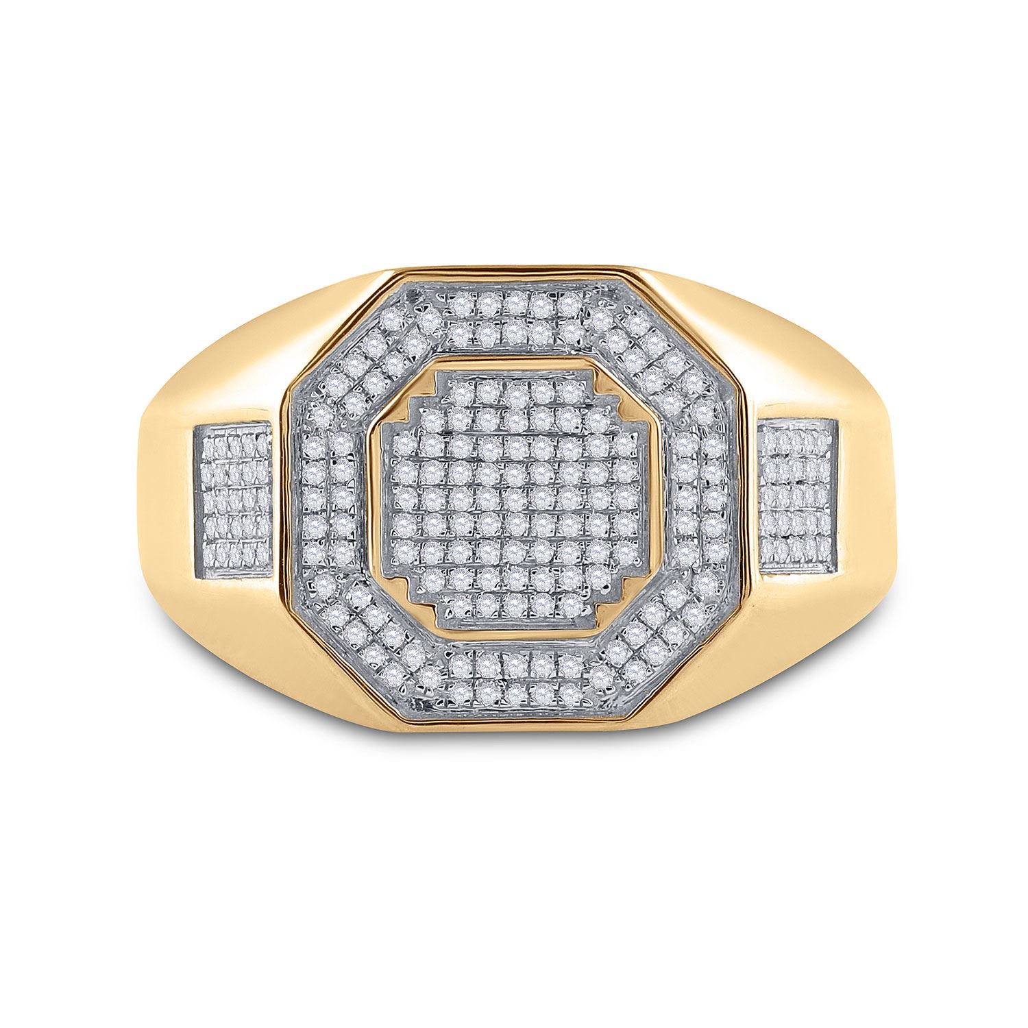 10kt Yellow Gold Mens Round Diamond Octagon Cluster Ring 3/8 Cttw
