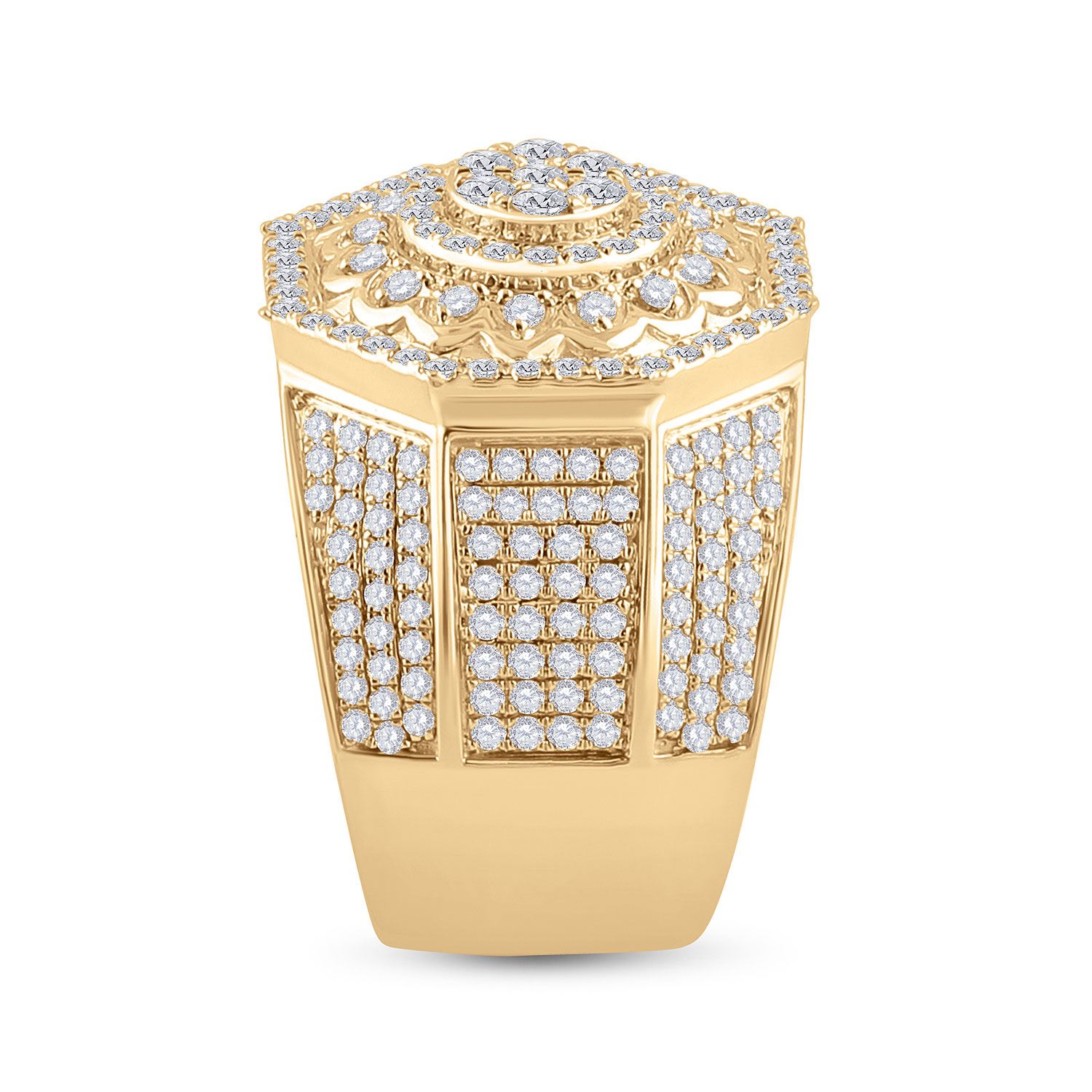 14kt Yellow Gold Mens Round Diamond Octagon Statement Cluster Ring 3-1/2 Cttw