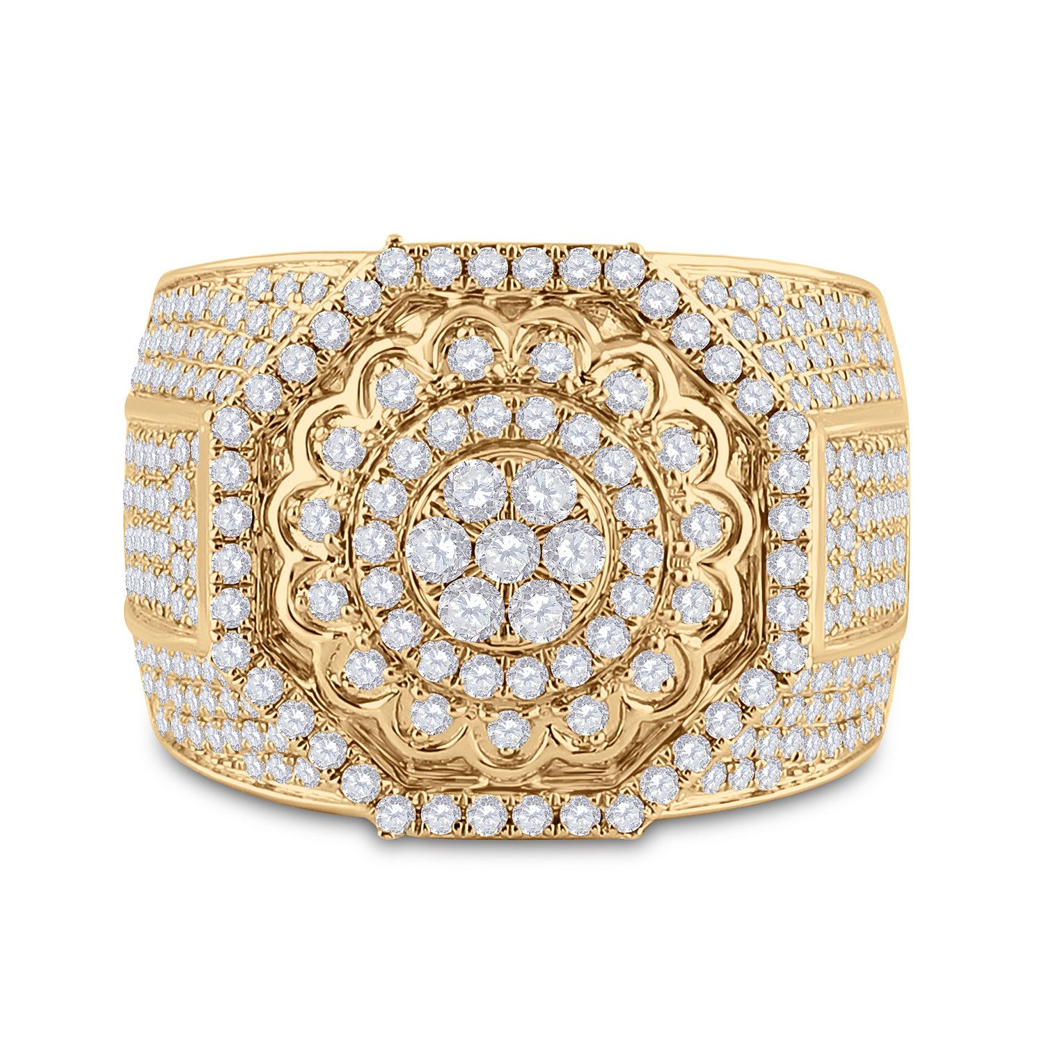 14kt Yellow Gold Mens Round Diamond Octagon Statement Cluster Ring 3-1/2 Cttw