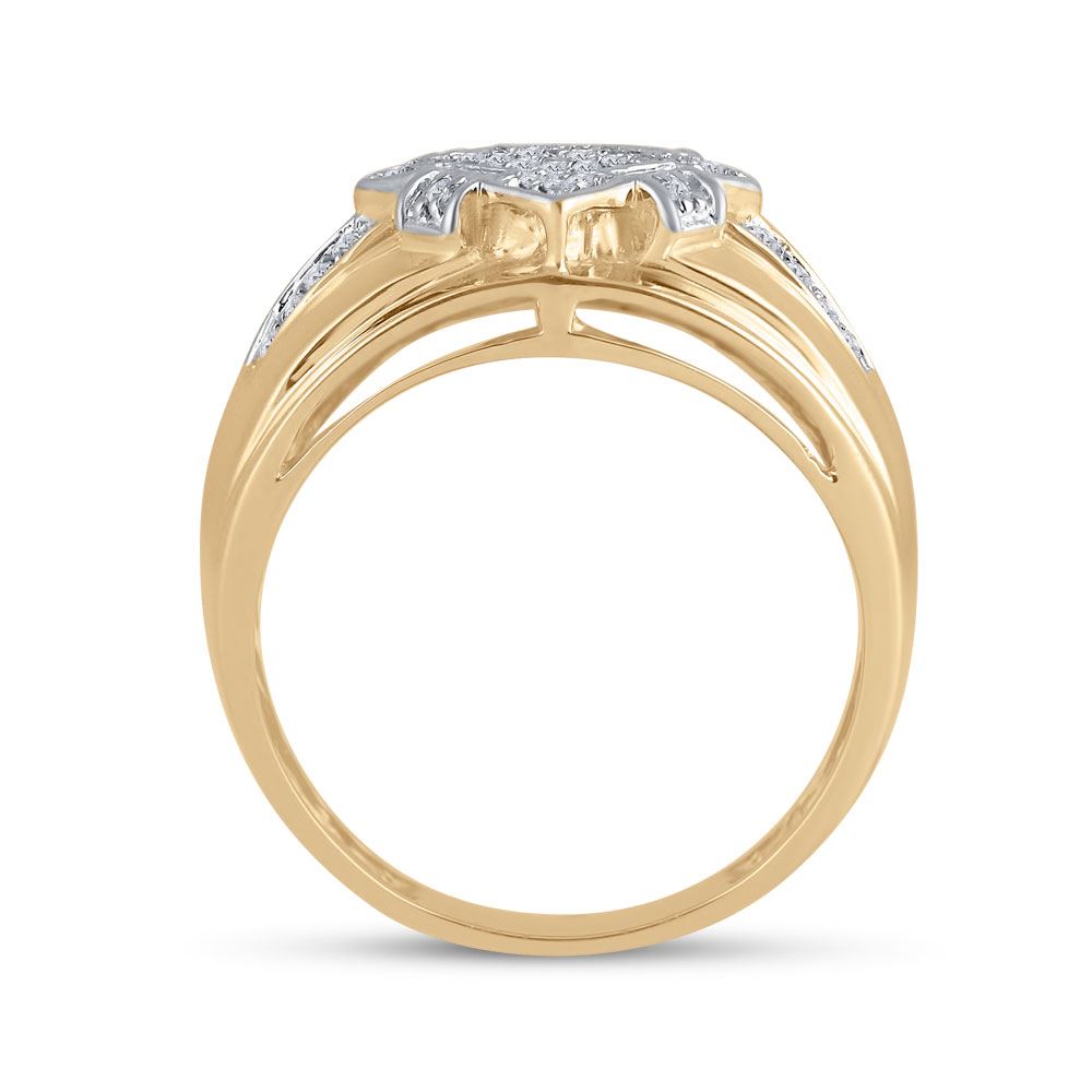 10kt Yellow Gold Mens Round Diamond Offset Square Cluster Ring 1/3 Cttw