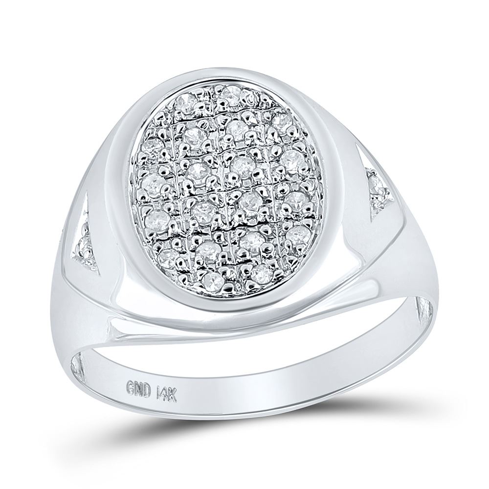14kt White Gold Mens Round Diamond Oval Cluster Ring 1/4 Cttw