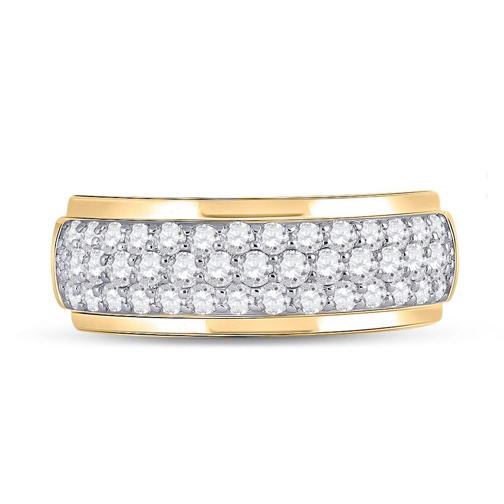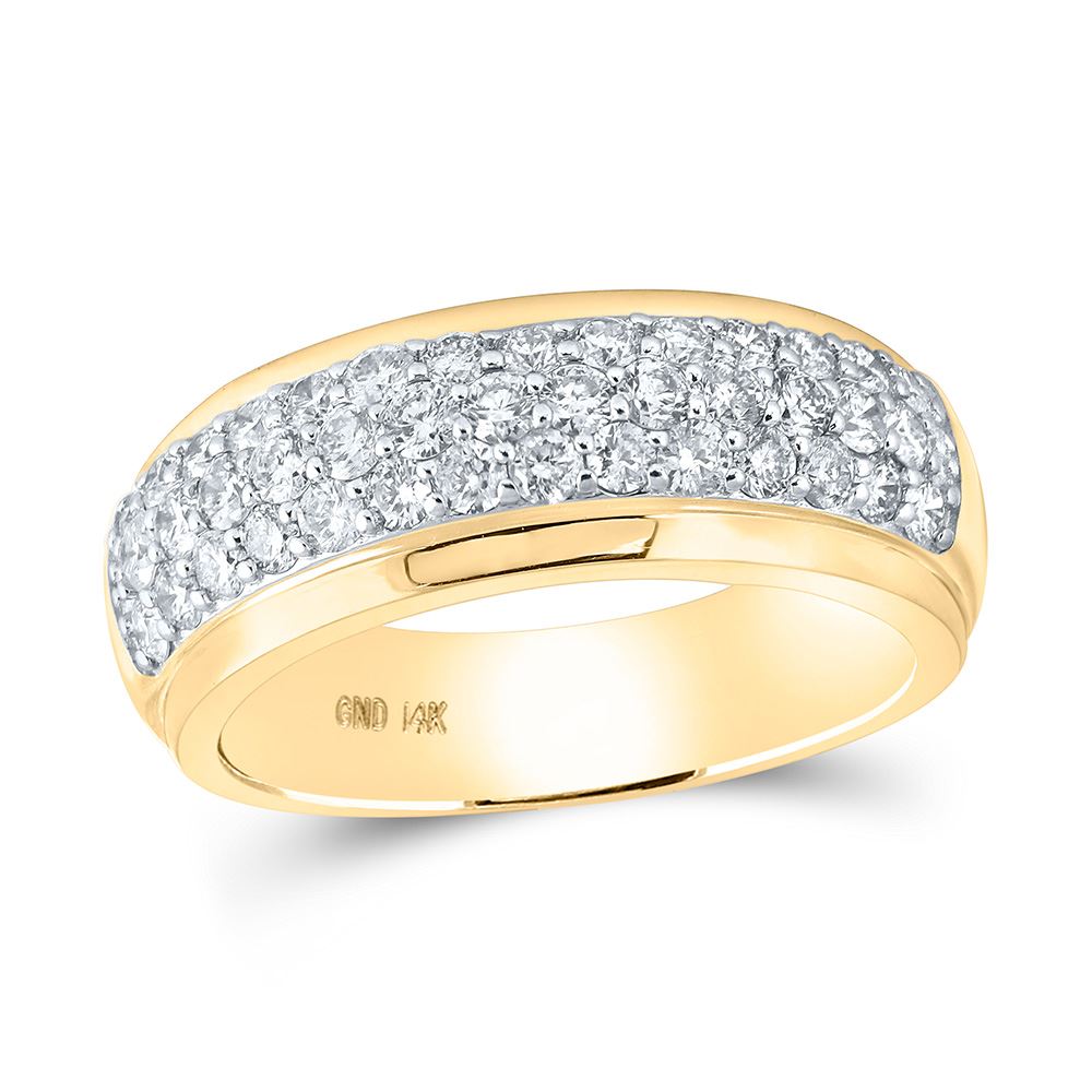14kt Yellow Gold Mens Round Diamond Pave Band Ring 1-1/2 Cttw