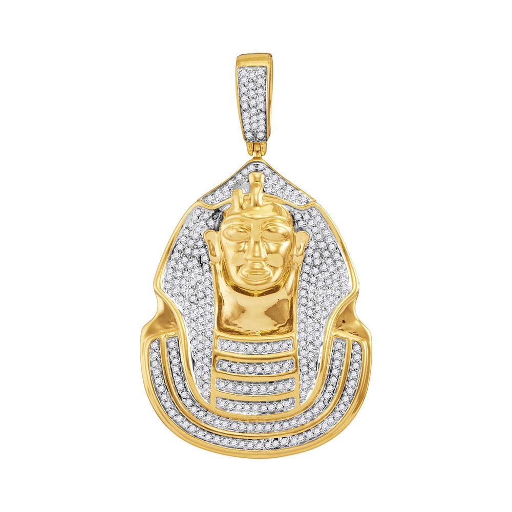 10kt Yellow Gold Mens Round Diamond Pharaoh Cluster Charm Pendant 7/8 Cttw
