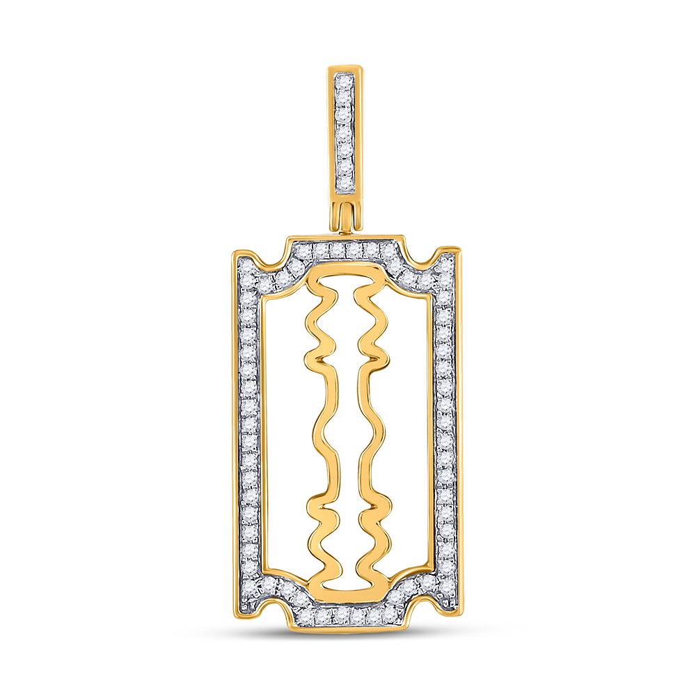10kt Yellow Gold Mens Round Diamond Razor Blade Charm Pendant 1/3 Cttw