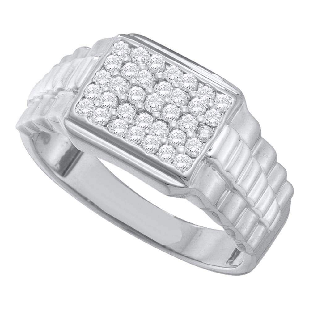 REF-40G0M - SKU: GD54948 ---- Mens Diamond Rectangle Cluster Ribbed Ring 1/2 Cttw 10kt White Gold