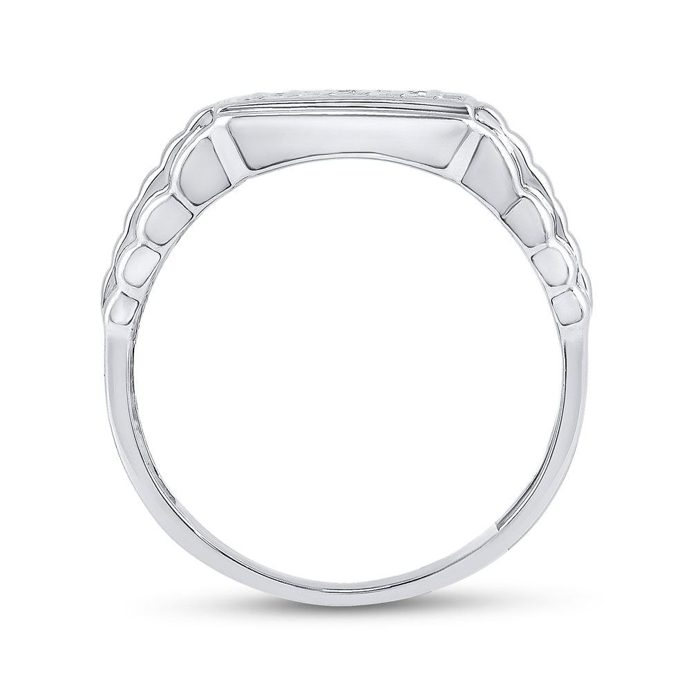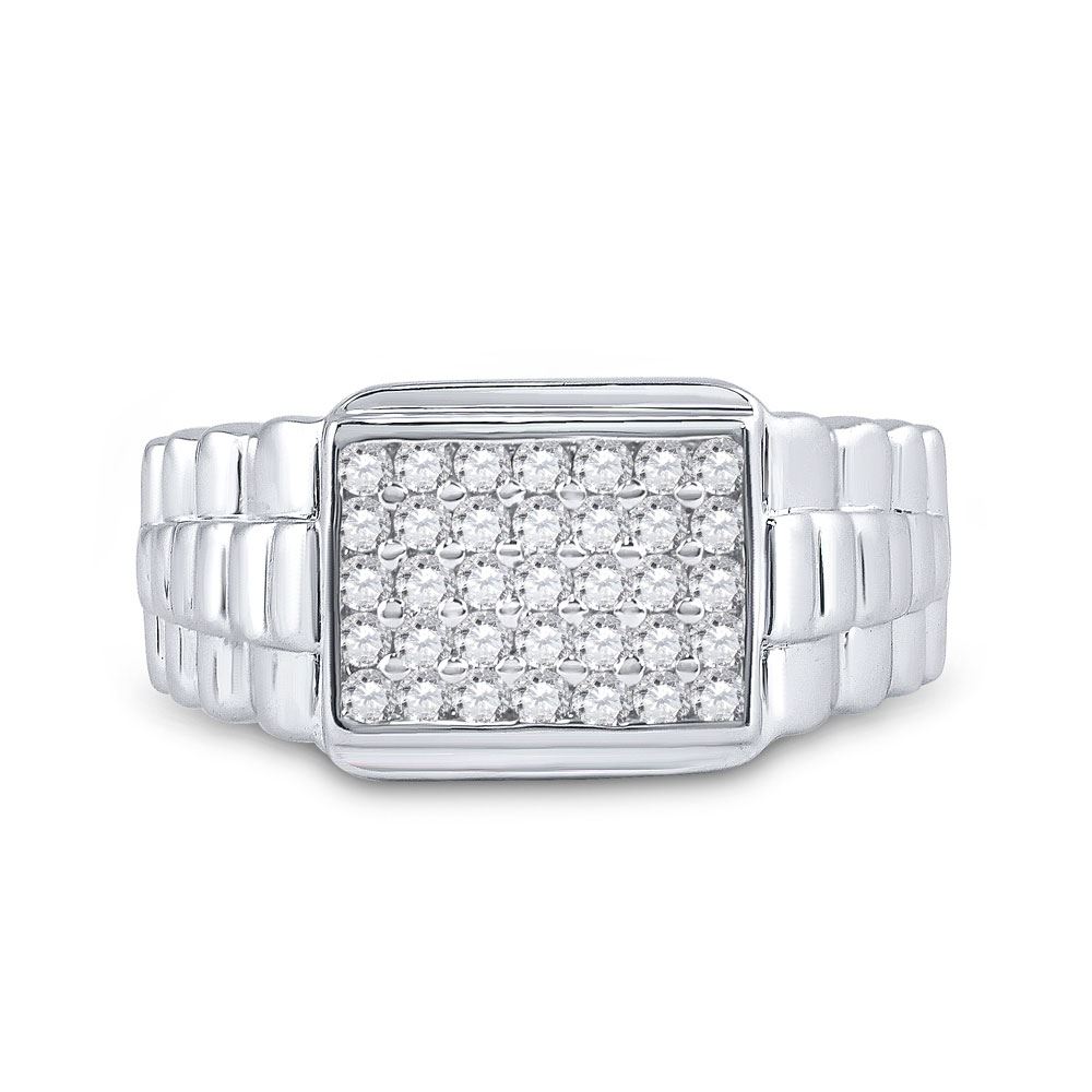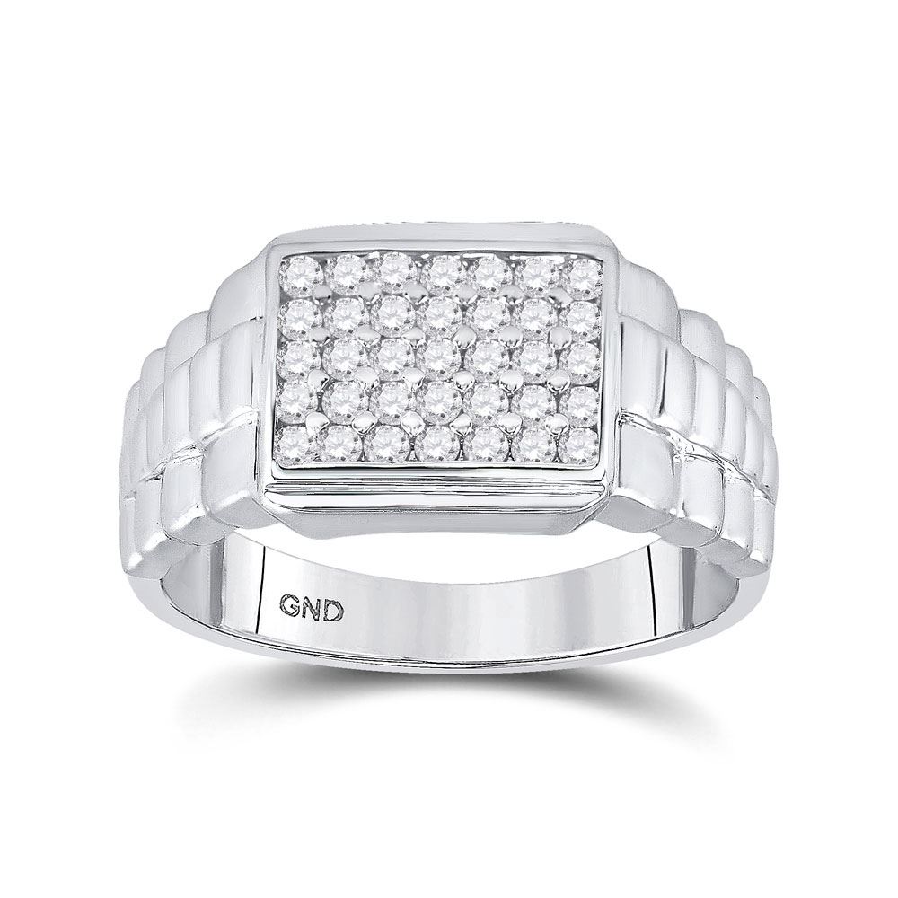 10kt White Gold Mens Round Diamond Rectangle Cluster Ribbed Ring 1/2 Cttw