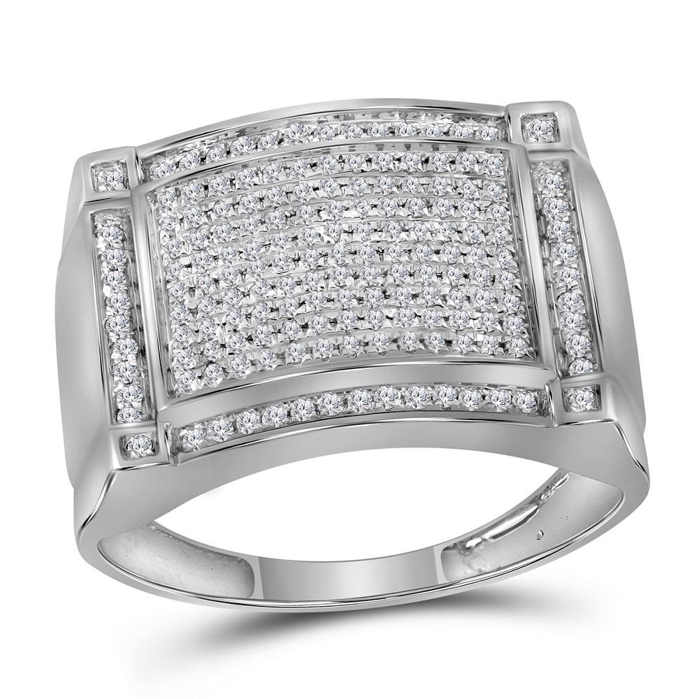 REF-40H0W - SKU: GD91358 ---- Mens Diamond Rectangle Cluster Ring 1/2 Cttw 10kt White Gold