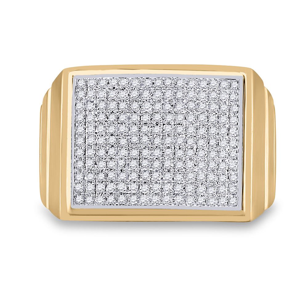 10kt Yellow Gold Mens Round Diamond Rectangle Cluster Ring 1/2 Cttw
