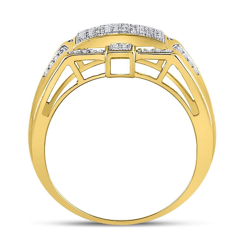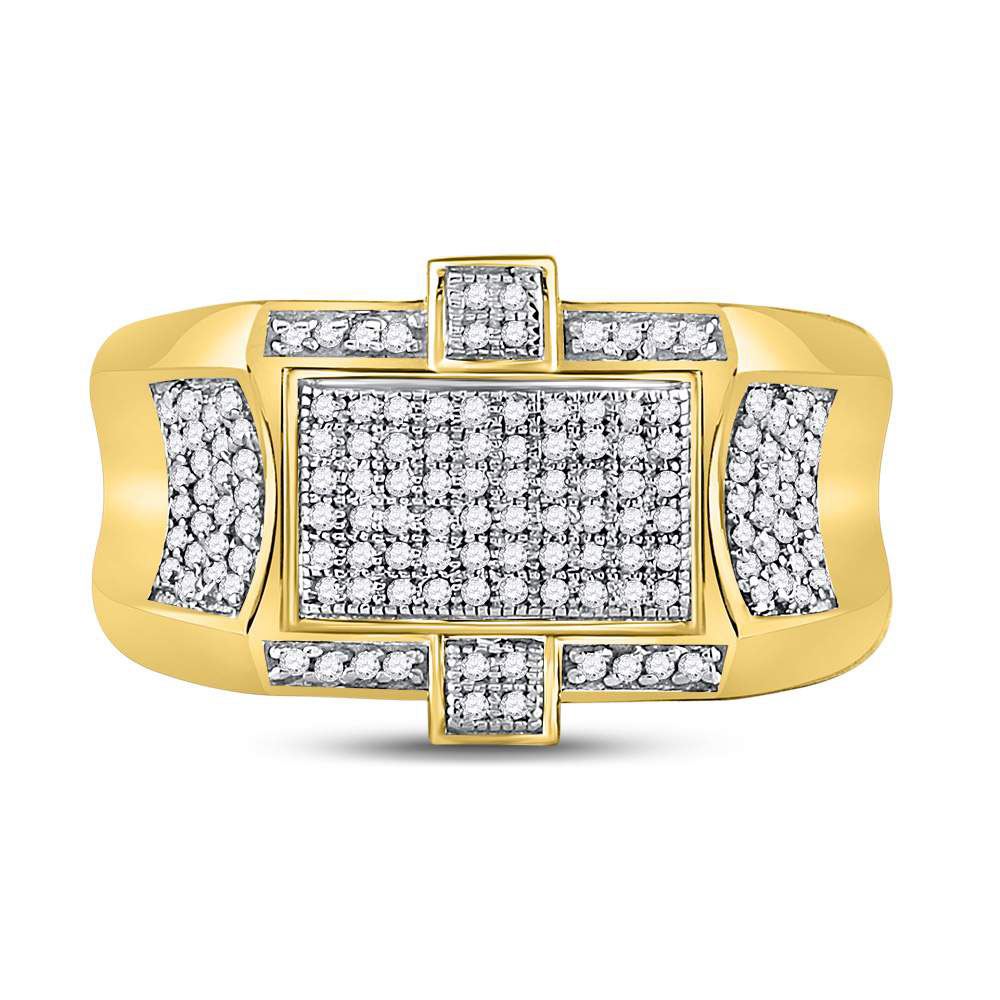 10kt Yellow Gold Mens Round Diamond Rectangle Cluster Ring 1/2 Cttw
