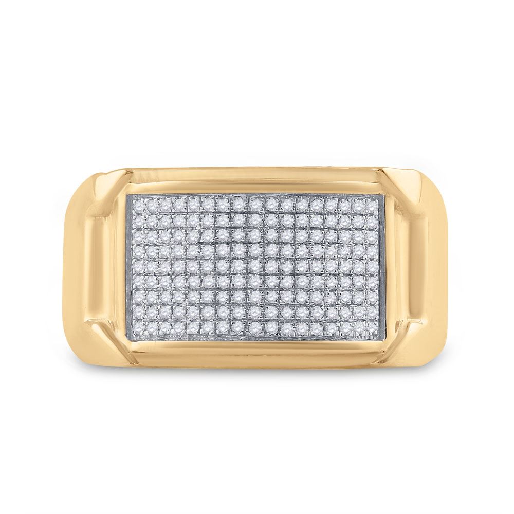10kt Yellow Gold Mens Round Diamond Rectangle Cluster Ring 1/3 Cttw